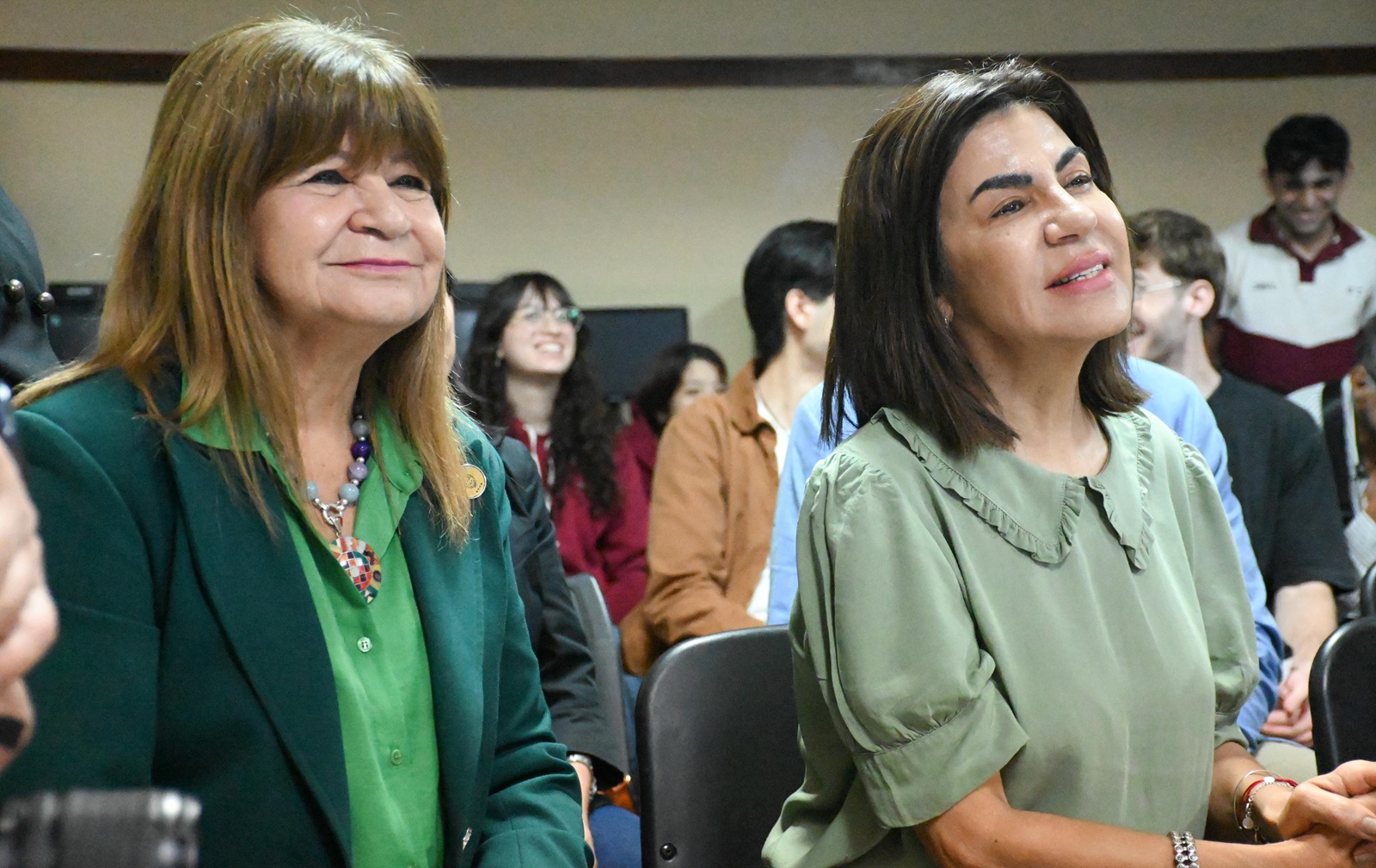 La presidente de la Cámara de Diputados, Carmen Delgado, junto a su par Zulma Galeano, participaron de la presentación de "Conectando con Señas", proyecto de alumnas de 4º año de la EET N° 24 "Simón de Iriondo". Se trata de un prototipo de App que utiliza la inteligencia artificial para captar y procesar señas en tiempo real. Con una interfaz sencilla, está diseñada para mejorar la comunicación entre personas sordas y oyentes, permitiendo una interacción más fluida entre ambas comunidades.